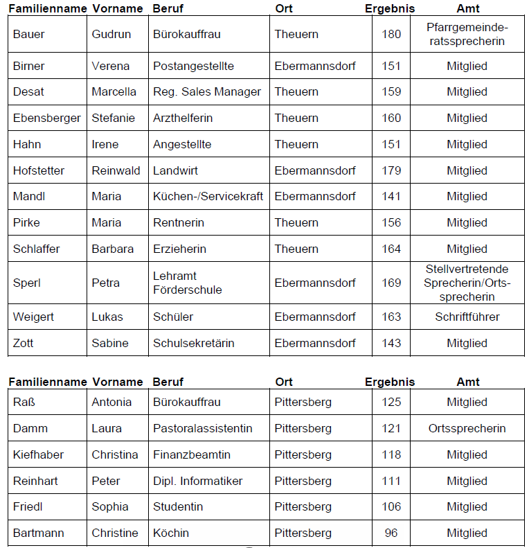 | Pfarrgemeinderatswahl am 1. März - Ergebnisse - |