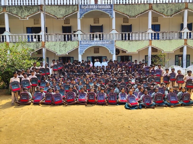 Spenden für die Schulkinder: In Indien müssen die Eltern die Schulausrüstung selbst bezahlen. Es ist eine große Belastung, um Ausgaben wie Schultaschen, Uniform, geometrisches Kit zu decken. Da das Schuljahr bald im Juni beginnt, wurde für 250 Kinder ein Betrag von 1150 Euro für die Schultaschen gespendet und 80 Kinder bekamen geometrische Kits. Die Taschen wurden nicht im Laden gekauft, sondern genäht, also war es auch eine große finanzielle Hilfe für diese privaten Kleinunternehmer.