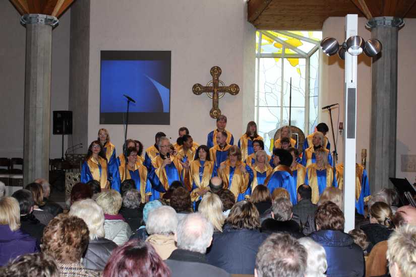 „Laetare! – Freut euch!“, einen passenderen Sonntag, als den vierten Fastensonntag gibt es wohl kaum für ein Gospelkonzert, bei dem sich die Besucher ebenso freuen, wie die Hauptdarsteller. Das dachten sich auch die Kirchenverwaltung und der Pfarrgemeinderat der Bruder-Konrad-Kirche bei der Planung des Konzerts mit Hope & Joy. Hätte es Eintritt gekostet, würde man sagen, es war ausverkauft. Aber es war ein Benefizkonzert zugunsten der Johanneskirche und so blieb es den Besuchern selbst überlassen, wie sie am Ende des zweistündigen Konzerts ihre Wertschätzung auch im Füllen der Spendenkörbchen ausdrückten. Es kamen insgesamt 1.130 Euro zusammen!