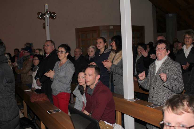 Nach knapp zwei Stunden und vor den lautstark eingeforderten Zugaben trat Christine Schormüller von der Kirchenverwaltung ans Mikrofon und dankte den Sängerinnen und Sängern für das fantastische Konzert. Sie wies auf die renovierungsbedürftige Johanneskirche hin, zu deren Gunsten die Spenden aus dem Benefizkonzert verwendet werden und lud anschließend in das Pfarrheim ein, wo der Pfarrgemeinderat einen deftigen Imbiss und Getränke für alle anbot. Singend und händeschüttelnd verließen die Hauptdarsteller des Abends schließlich die Kirche und die Kälte der Nacht trug ihre wunderbaren Stimmen noch lange aus dem Innenhof in das umliegende Dorf.